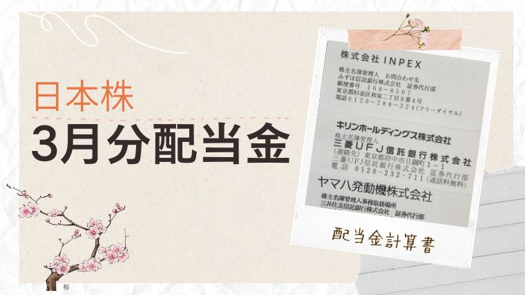 ※この記事は、毎年3月に受け取った日本株の配当金を記録する「配当金生活チャレンジ」です。URLはそのままに、毎年追記して更新していきます。(最終更新:2026年4月10日)