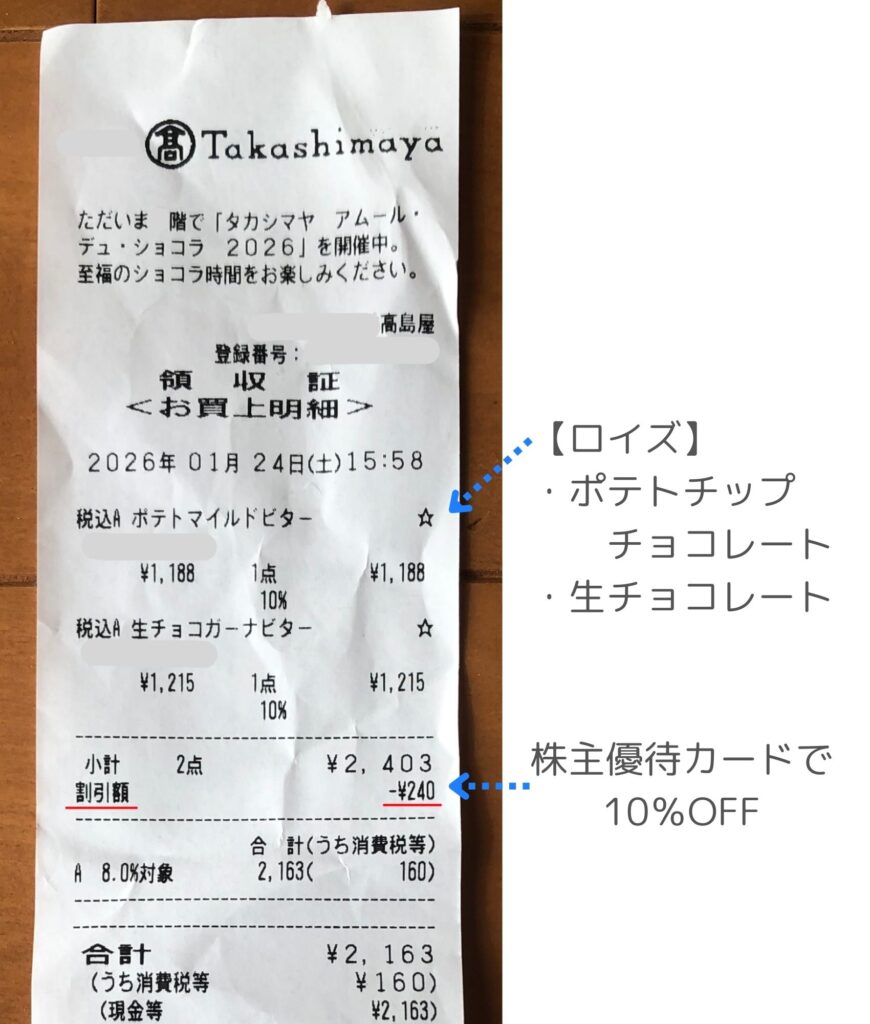 私はイベント会場でロイズのチョコレートなどを購入し、その後はAfternoon Tea(アフタヌーンティー)や総菜売り場にも立ち寄りました。1日を通して株主優待カードを使いながら、お得にお買い物ができました♪